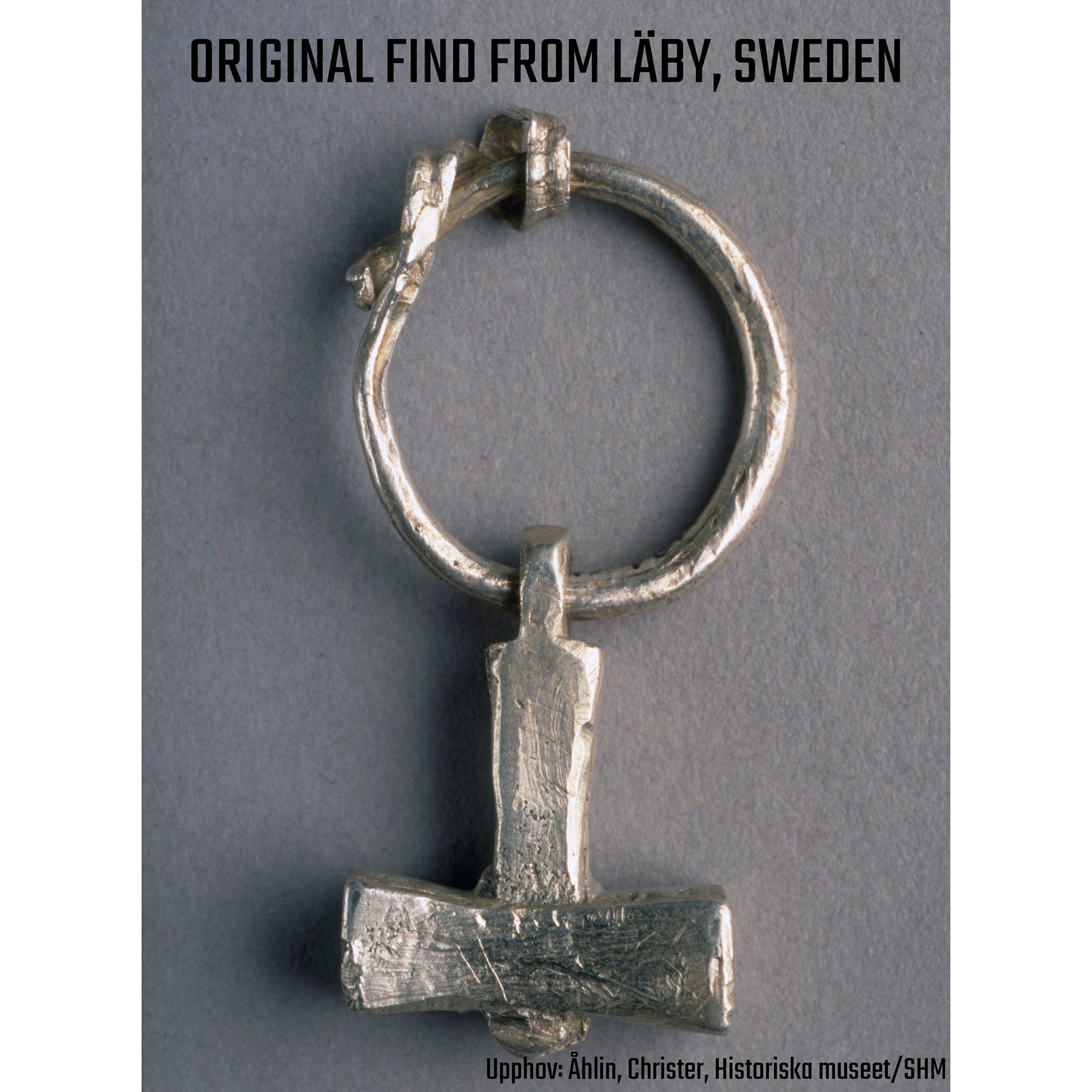 Ett stort klassiskt, stilrent hänge baserat på Torshammaren som hittades i Läby, Sverige. Originalsmycket var tillverkat av silver.