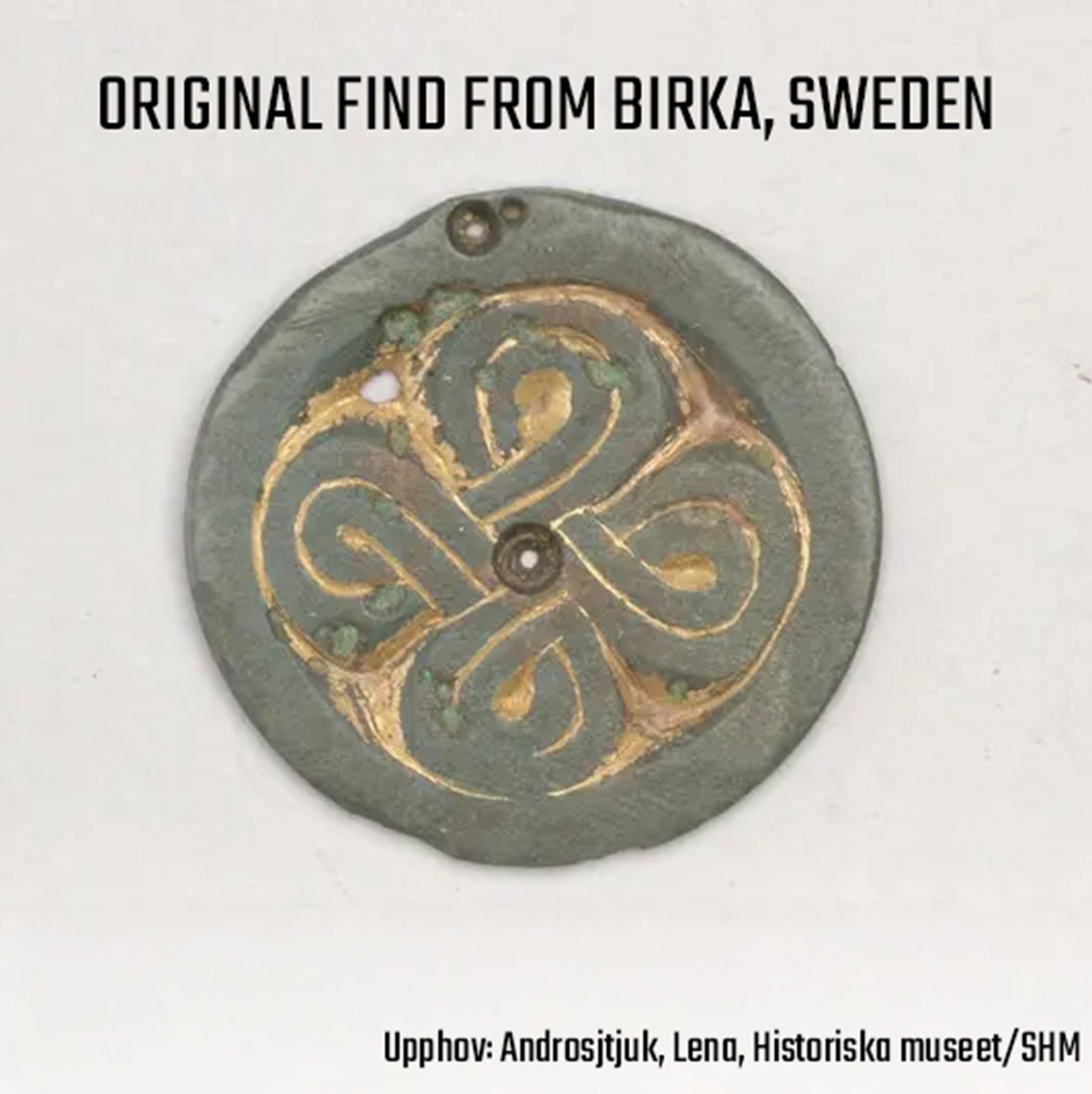 Handgjort hänge i kermik inspirerat av ett originalfynd från grav 1084 i Birka. Hänget har en mjukt rundad droppform med ett graverat fyrklöversmotiv, en symbol för lycka som återfinns på historiska smycken från vikingatiden. Den antikbehandlade ytan framhäver det graverade mönstret och gör varje exemplar unikt i färg och struktur. Varje hänge är individuellt handgjort för en verkligt personlig och historisk känsla. Kommer med ett justerbart snöre.
