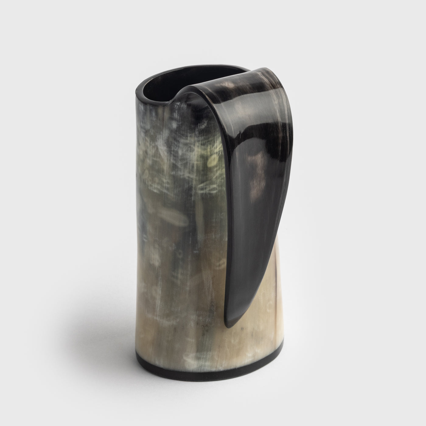 This carefully handmade mug is crafted from a single piece of horn that has been cut to shape, heated and shaped to form a handle. A resin base is added for extra sturdiness. It comes with a carefully polished, cleaned and sealed inside that is safe to drink from. The shape and colour of each mug is unique and may differ from that in the picture.