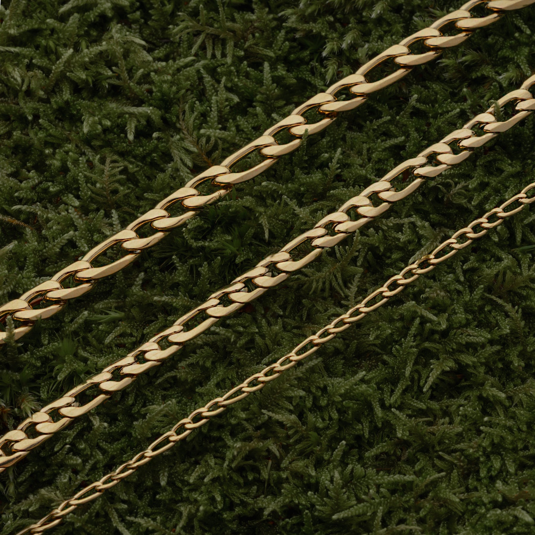 Figaro chain with a distinctive link pattern. Worn as a solitaire or with a pendant.