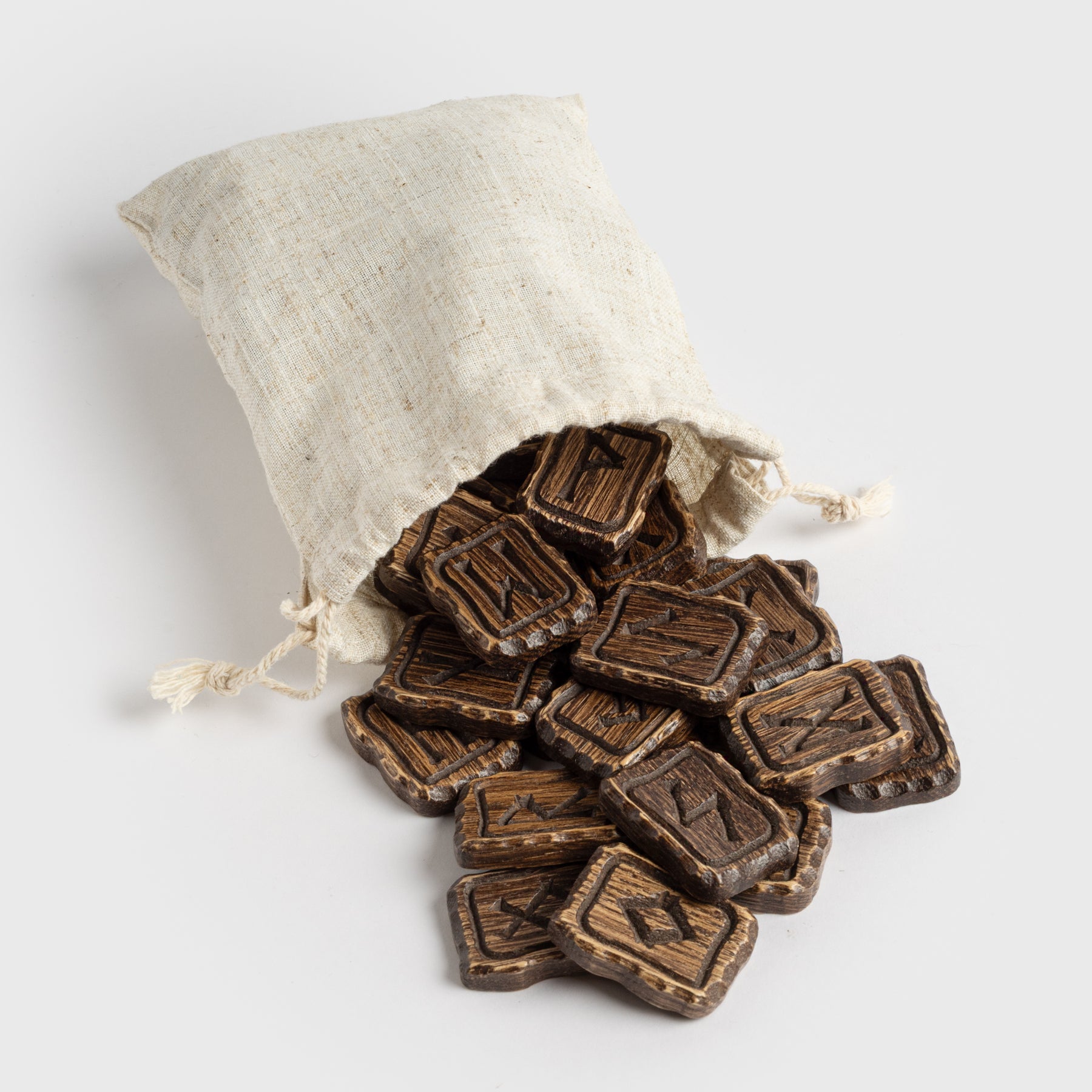 A masterfully crafted set of oak tiles, each engraved with a rune from the Elder Futhark. Perfect for games, divination, or as a striking decorative piece.