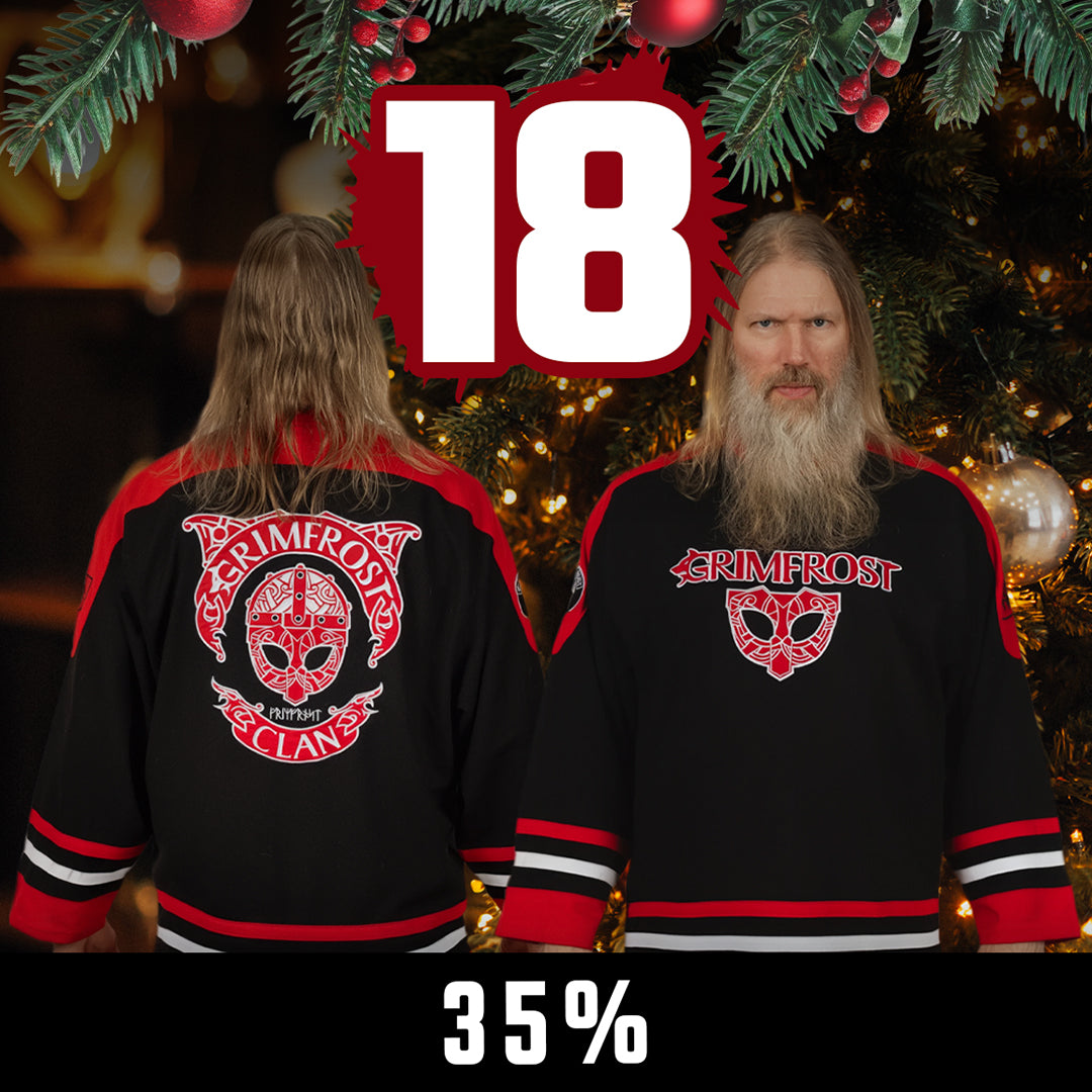 Top quality hockey jersey with premium embroidery and real patches. The arms come with a Grimfrost Clan patch and a Raven Banner patch. The front features Grimfrost embroidery, whilst the back has the Grimfrost Clan design embroidered on it.