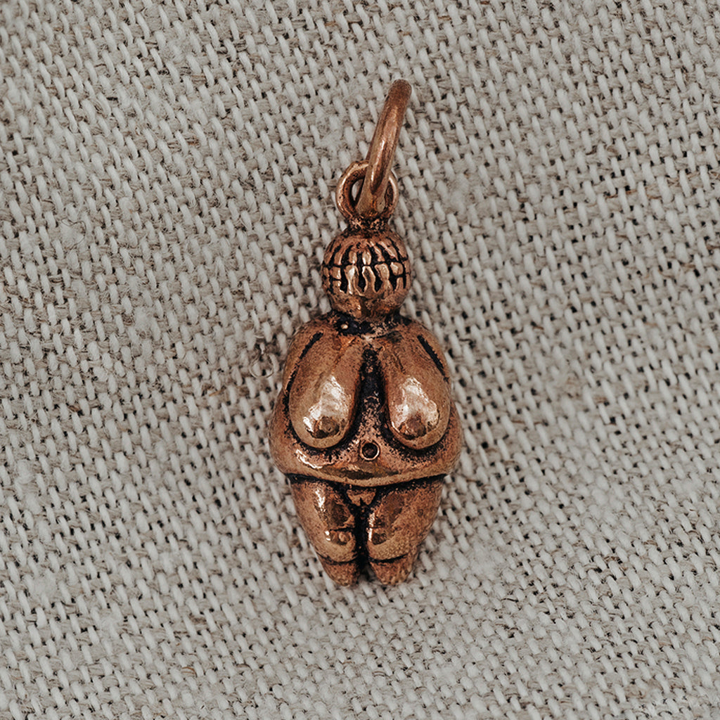 Carefully handmade pendant based on the Mother Goddess figure found in Willendorf, Austria, in 1908. The original figure was made in limestone during the "Old Stone Age", a period of prehistory starting around 30,000 BCE.