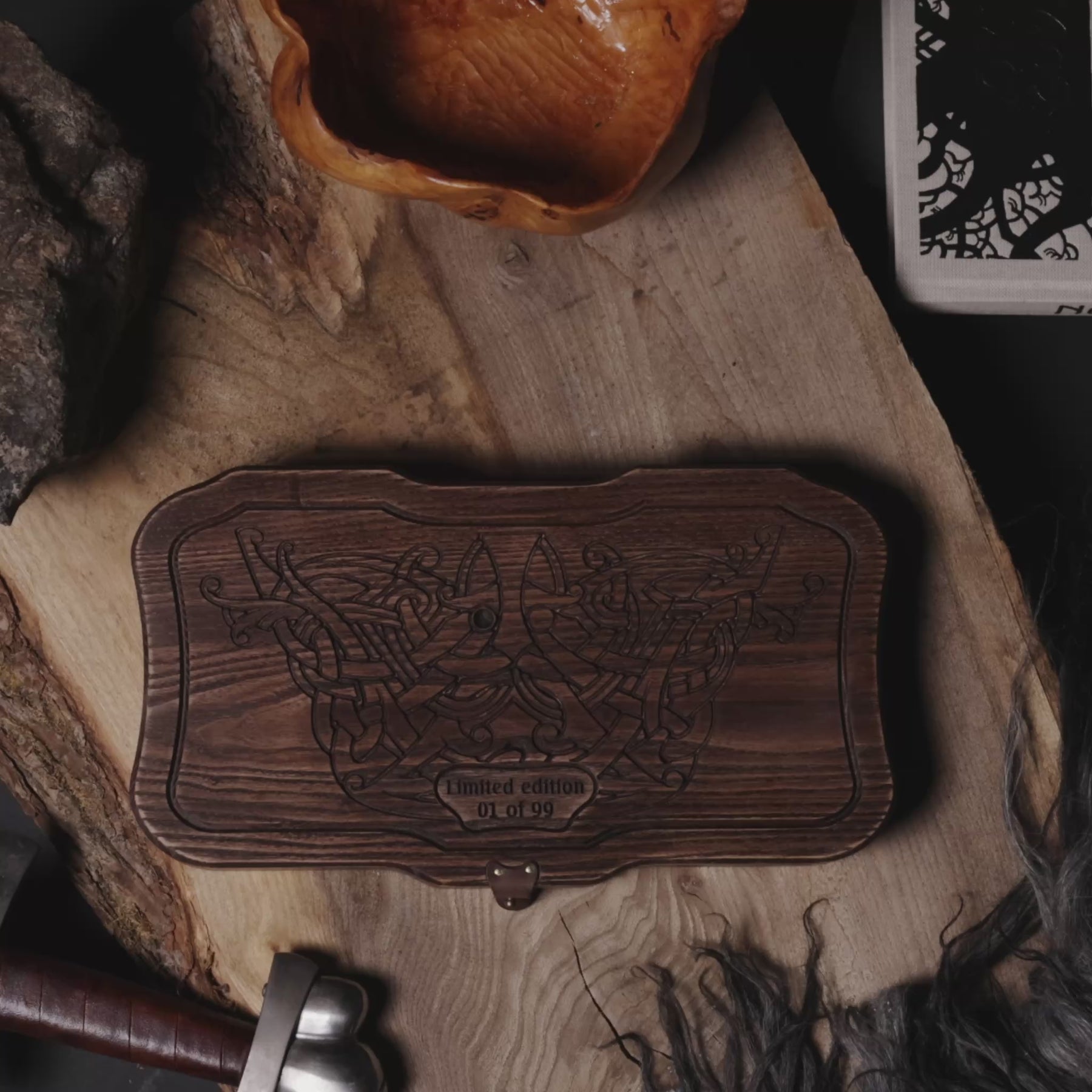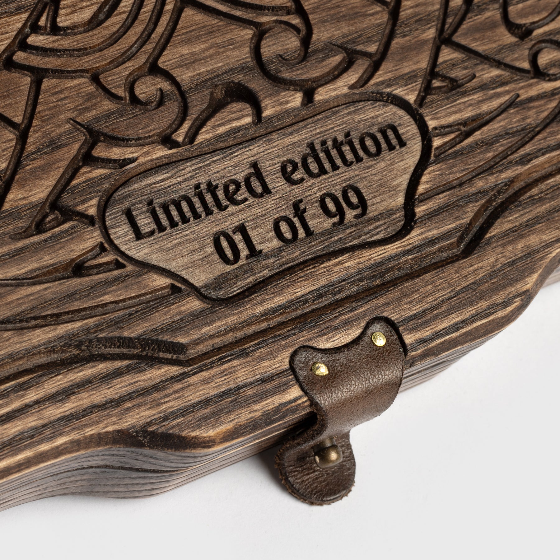 This exclusive edition is strictly limited to 99 pieces. The individual edition number is carefully carved into the lid of each box. Use the runes for divination practices or as a spectacular display item.