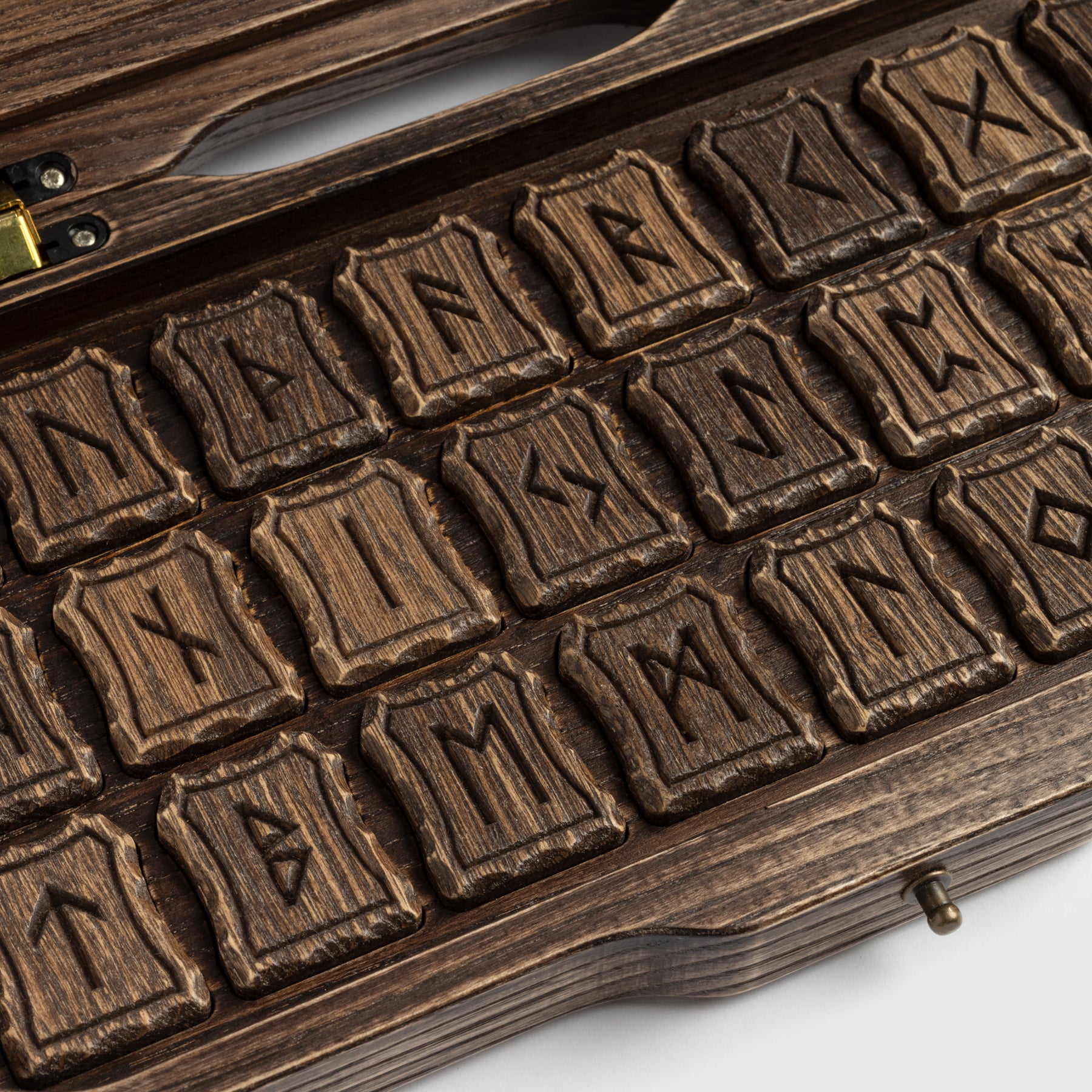 • Rune material: 700-year-old thunderstruck oak from western Poland