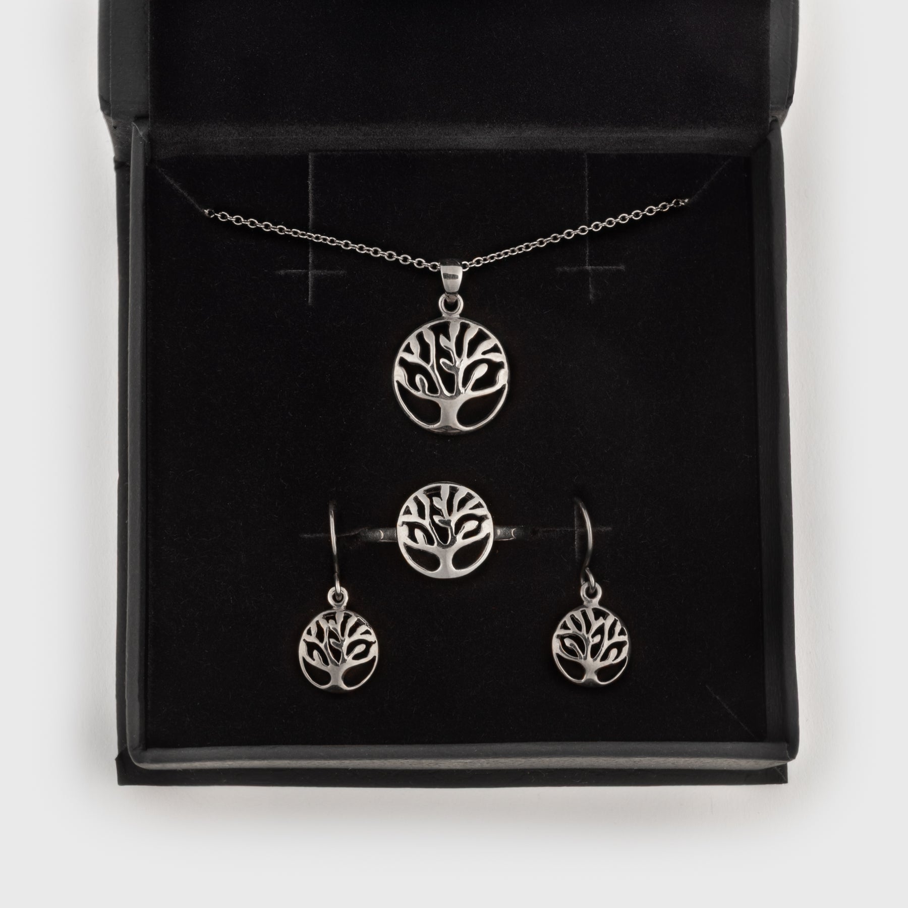 The jewelry box is crafted with a matte black faux leather exterior that gives a refined and elegant appearance. It features a discreet magnetic closure, keeping the lid securely in place while maintaining a smooth design. The interior is lined with soft black foam that both protects and enhances the presentation of your jewelry, making it ideal for all Vanadis pendants, earrings and rings.