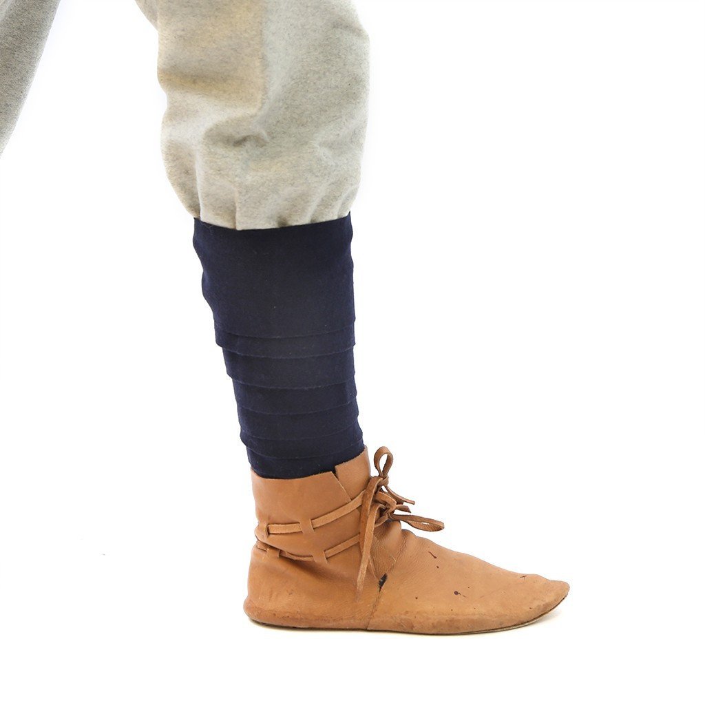 Leg wrappings, or winingas, were common among the Vikings. They offer warmth during the winter and keep the legs protected from brush. They also provide compression and support for the calves during work or fighting. In order to fasten your leg wraps you can use small fibulas (brooches) or simply tuck in the loose end.