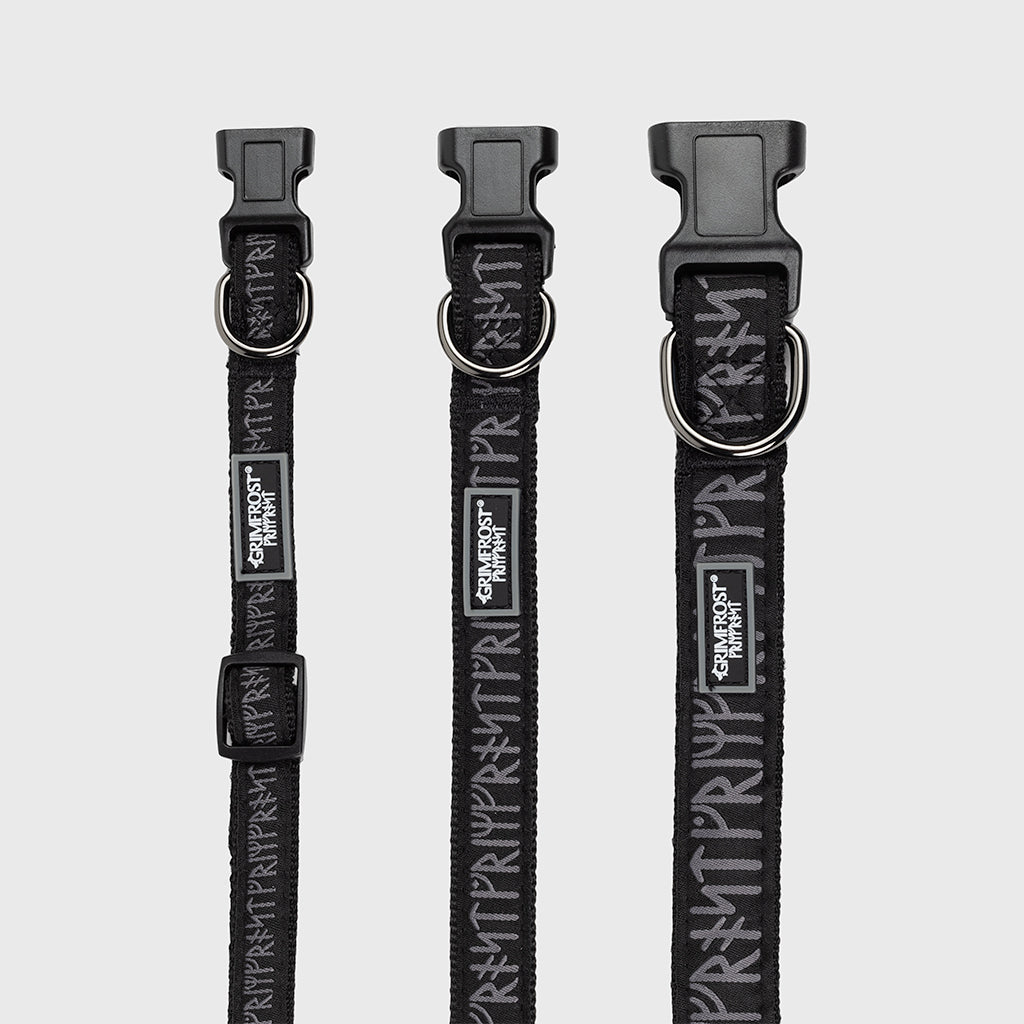 Mjukt och slitstarkt nylonhalsband som levereras med en praktisk Snabbt spänne som gör att du inte behöver sätta tillbaka det varje gång du går på promenad. Den säkra passformen förhindrar att hunden rymmer eller backar ur halsbandet. Finns i 3 bredder för alla hundstorlekar. Remmarna är justerbara för att ge maximal komfort och tillförlitlig passform. Grimfrosts runlogotyp löper längs hela halsbandet. Välj bland matchande koppel.