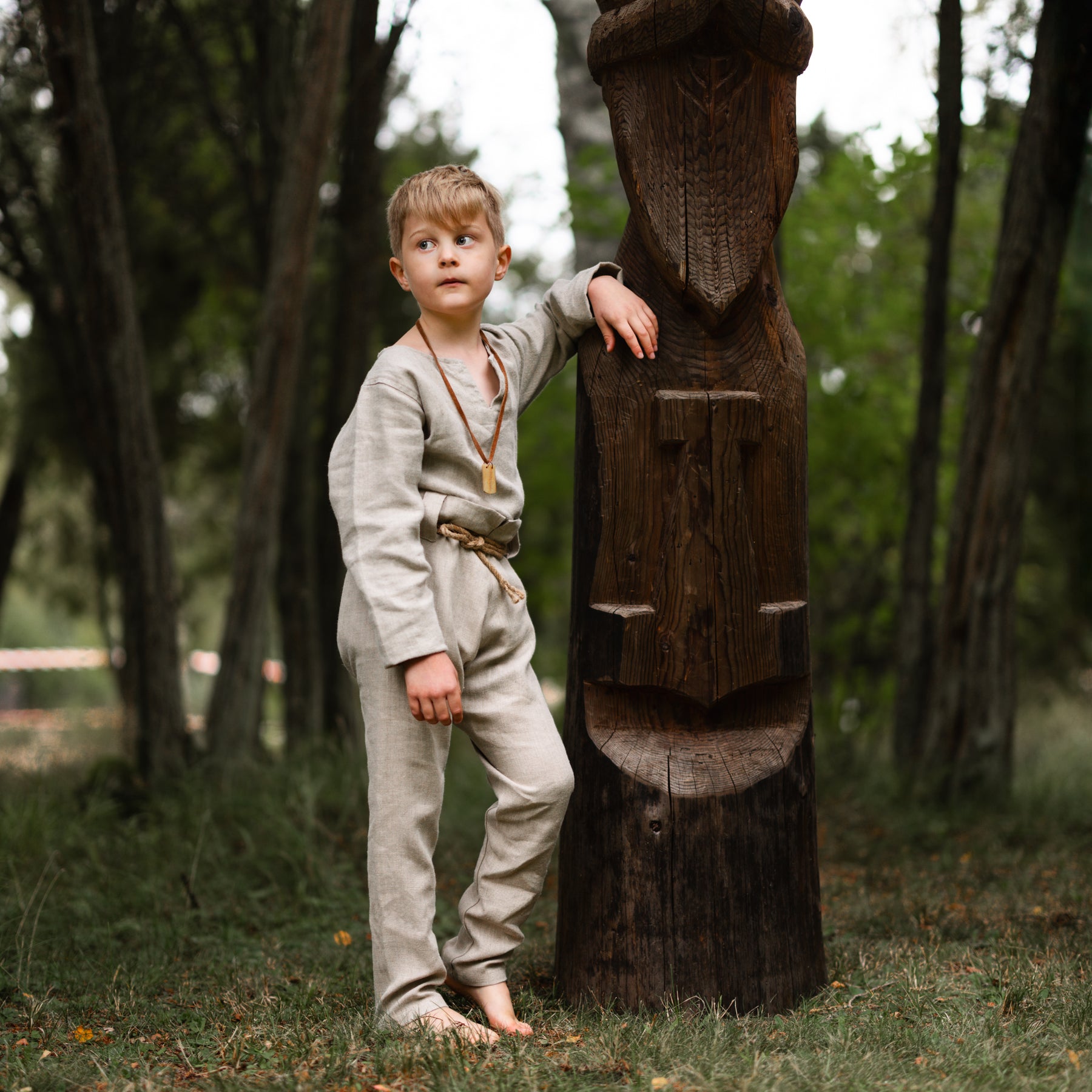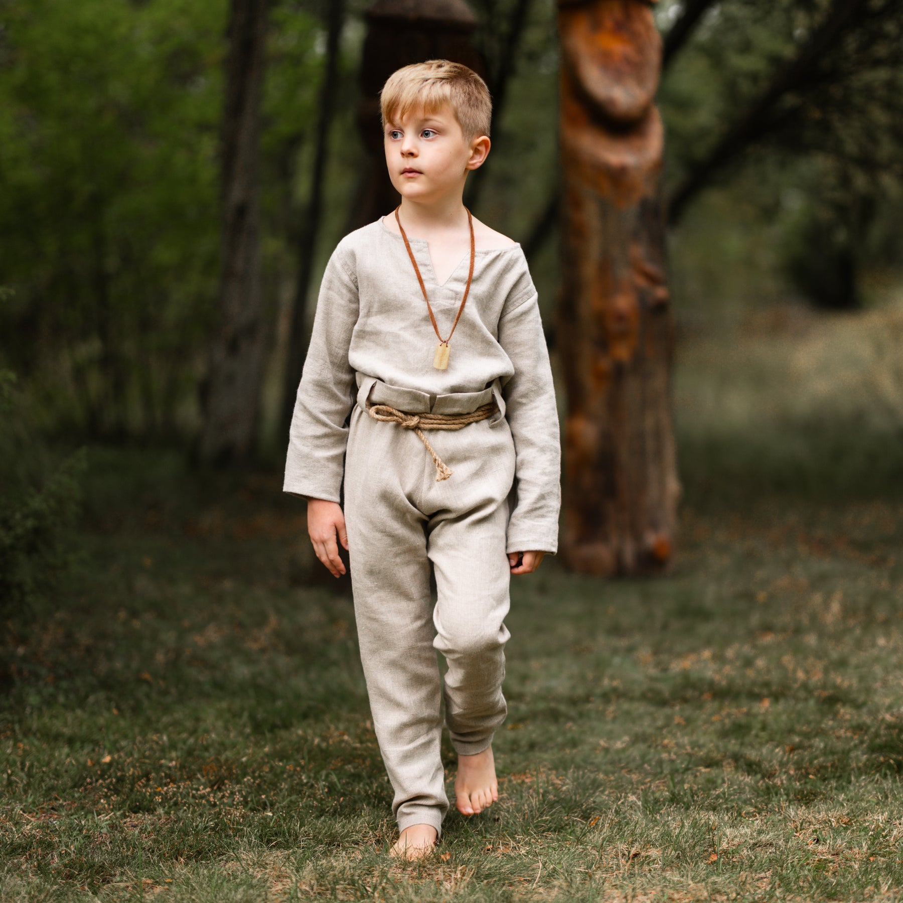 Sköna byxor baserade på det ursprungliga paret som hittades i Torsberga (=Thors berg) i Sverige. De är tillverkade av fint linne och är perfekta att bära under varmare årstider. Under kalla årstider fungerar de utmärkt under yllebyxor.