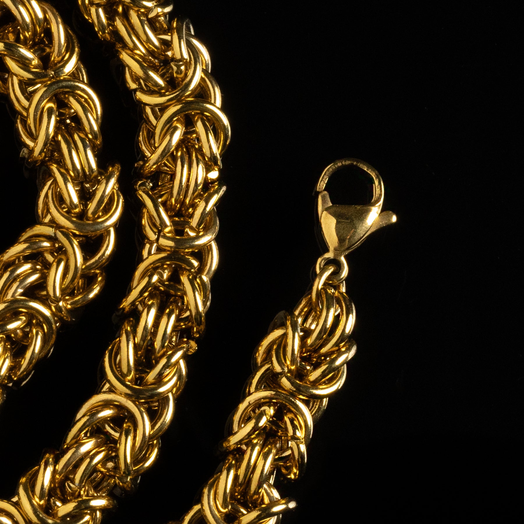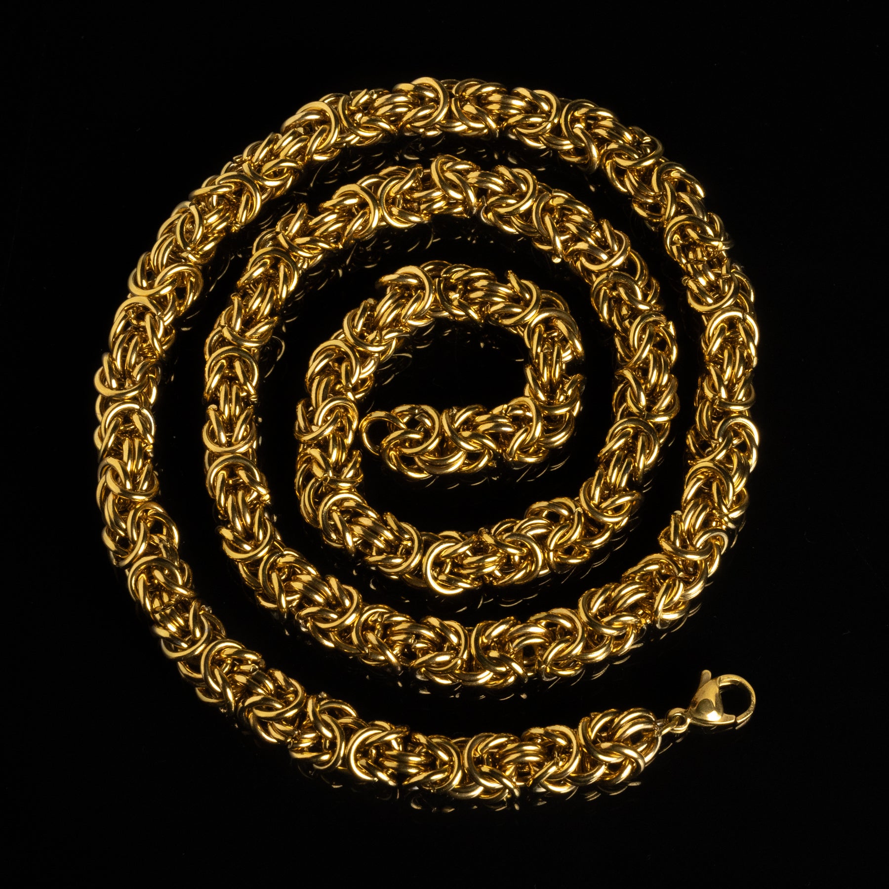 Som namnet antyder är detta kungen av alla kedjor och den sågs som ett tecken på framgång och makt bland vikingarna. Processen att tillverka den för hand är mycket tidskrävande, eftersom varje liten länk läggs till kedjan en efter en. Den levereras med ett karbinlås som håller detta maffiga smycke säkert runt din hals.