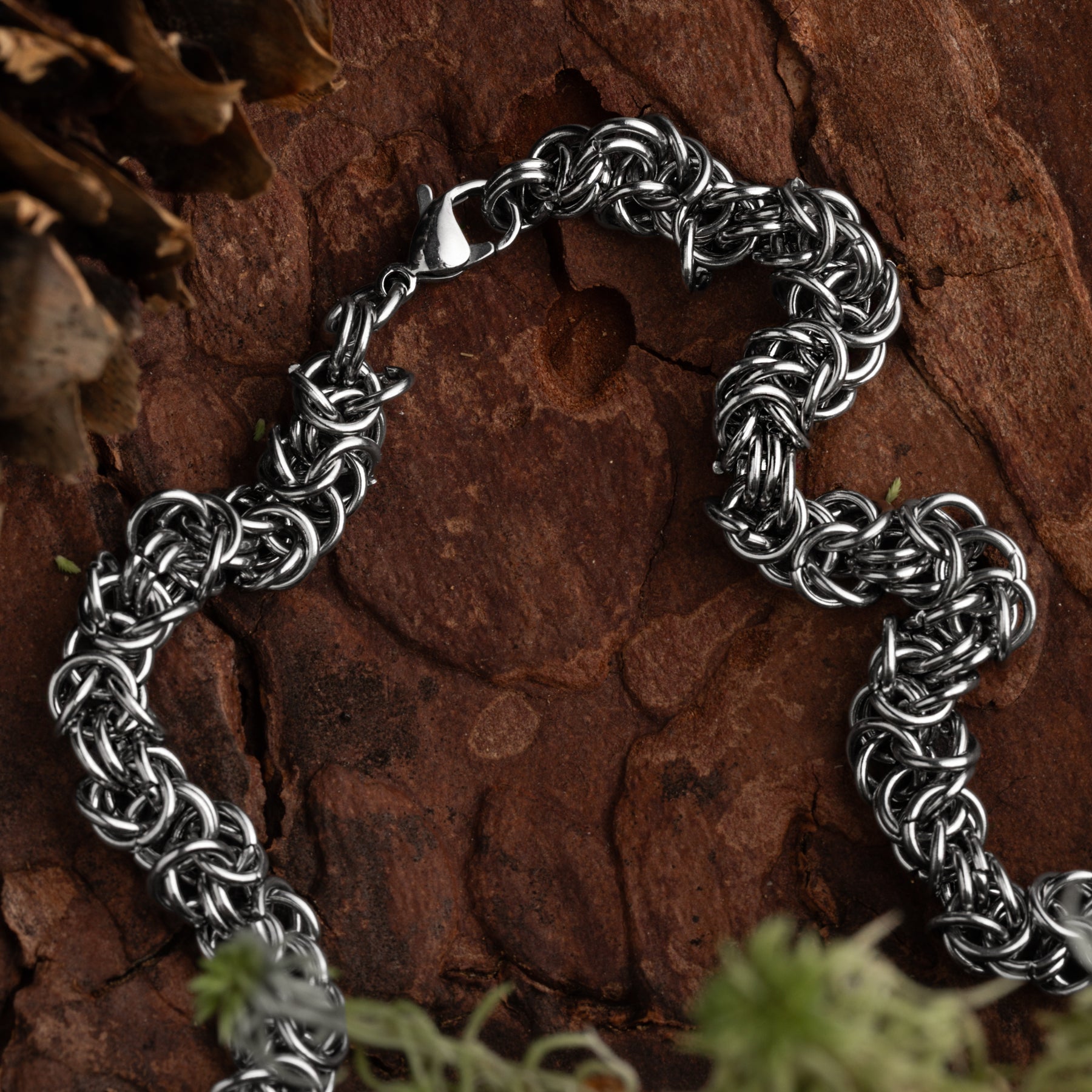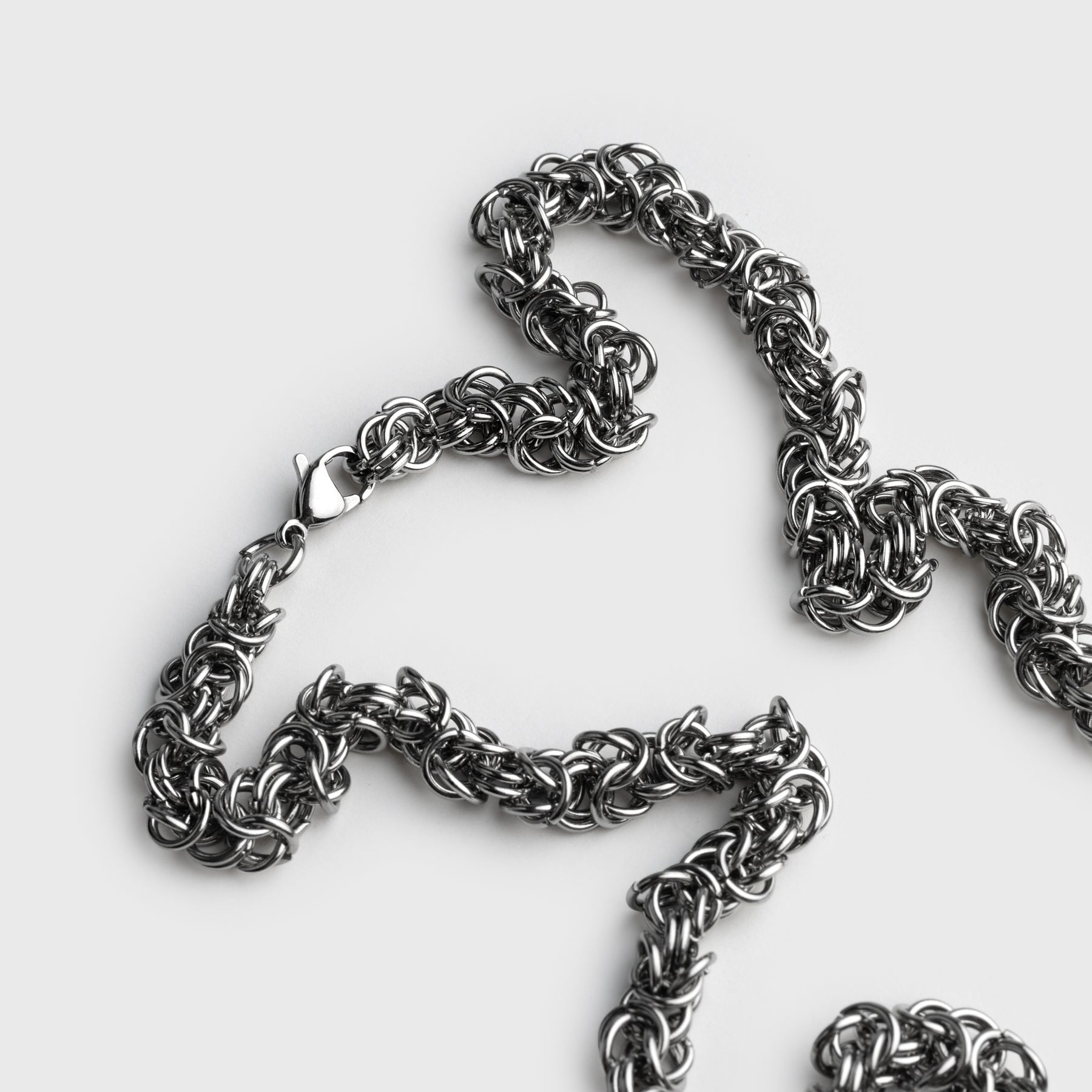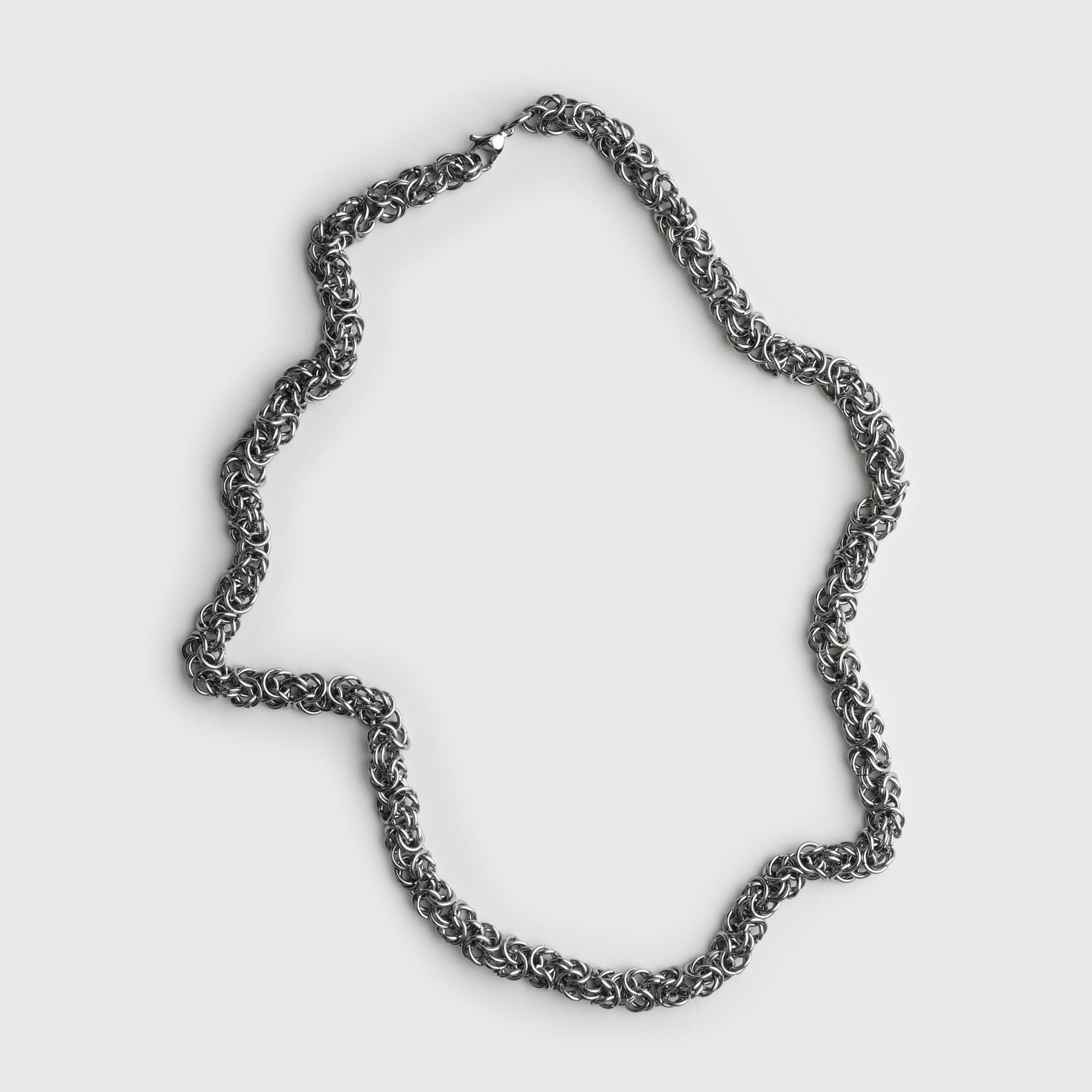 Som namnet antyder är detta kungen av alla kedjor och den sågs som ett tecken på framgång och makt bland vikingarna. Vår kungakedja är 100% handgjord av rostfritt stål, vilket ger ett fantastiskt smycke som aldrig rostar. Processen att tillverka den för hand är mycket tidskrävande, eftersom varje liten länk läggs till kedjan en efter en. Den levereras med ett karbinlås som håller detta maffiga smycke säkert runt din hals.