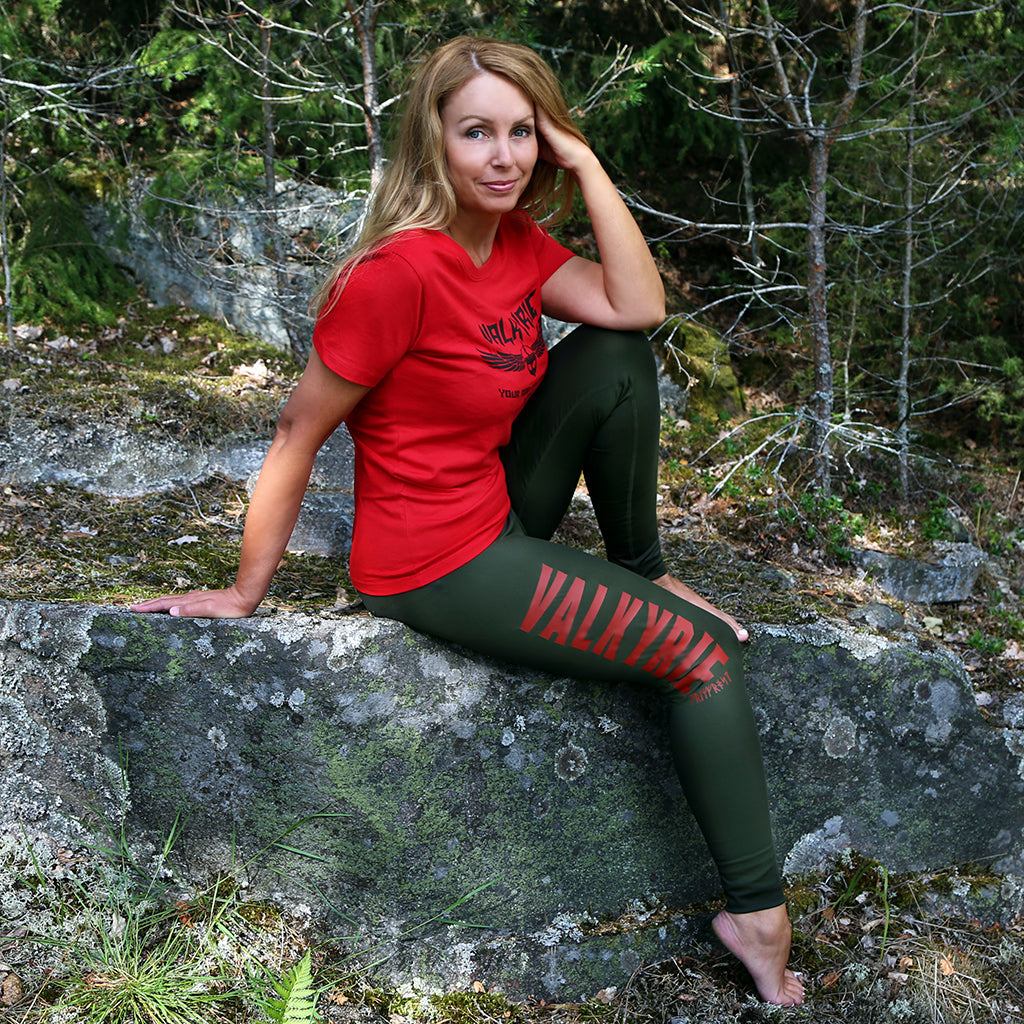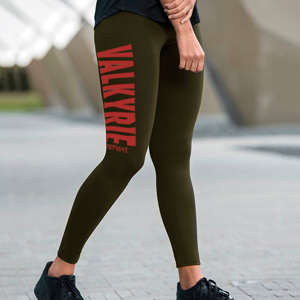 Hellånga leggings av högsta kvalitet med Valkyrie-mönster och "Grimfrost" skrivet i runor. Tillverkade av material som inte är för tunt eller varmt, de är lätta attoch är utformade för att stärka din hållning samtidigt som de smalnar av och slätar ut på rätt ställen. Dessa leggings passar till praktiskt taget allt och är snygga året runt. Bär dem till kjol, klänning eller bara som de är. Det elastiska materialet gör dem bekväma att använda när du springer, cyklar, gör yoga, konditionsträning eller andra träningspass.