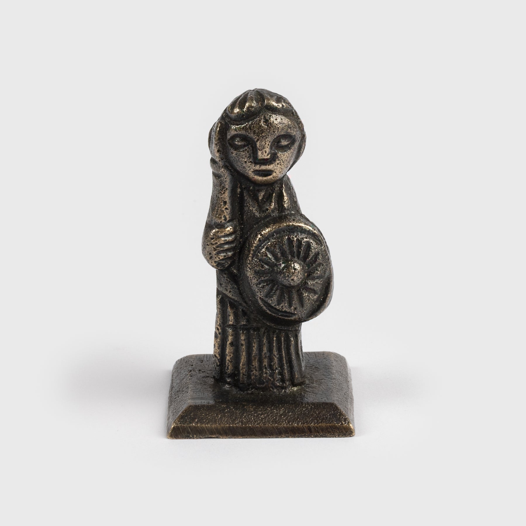 Denna 7 cm höga bronsfigurin föreställer en valkyria. Den är baserad på den ursprungliga figurinen som hittades 2012 på den danska ön Fyn. Originalfiguren är daterad till ca 800 e.Kr. och finns i Danmarks nationalmuseum. Figurinen är tros vara en valkyria. En valkyria ("de dödas utkorare") är en av de kvinnliga gestalter som Odin sänt för att välja vem av de dödade i ett slag som ska få leva sitt liv efter döden i Valhall. Figuren bär sitt hår i en knuten hästsvans och har det långa klädesplagg som ses på många andra kvinnliga avbildningar i vikingakonsten. Hon bär ett upprättstående svärd i höger hand och en sköld i vänster.