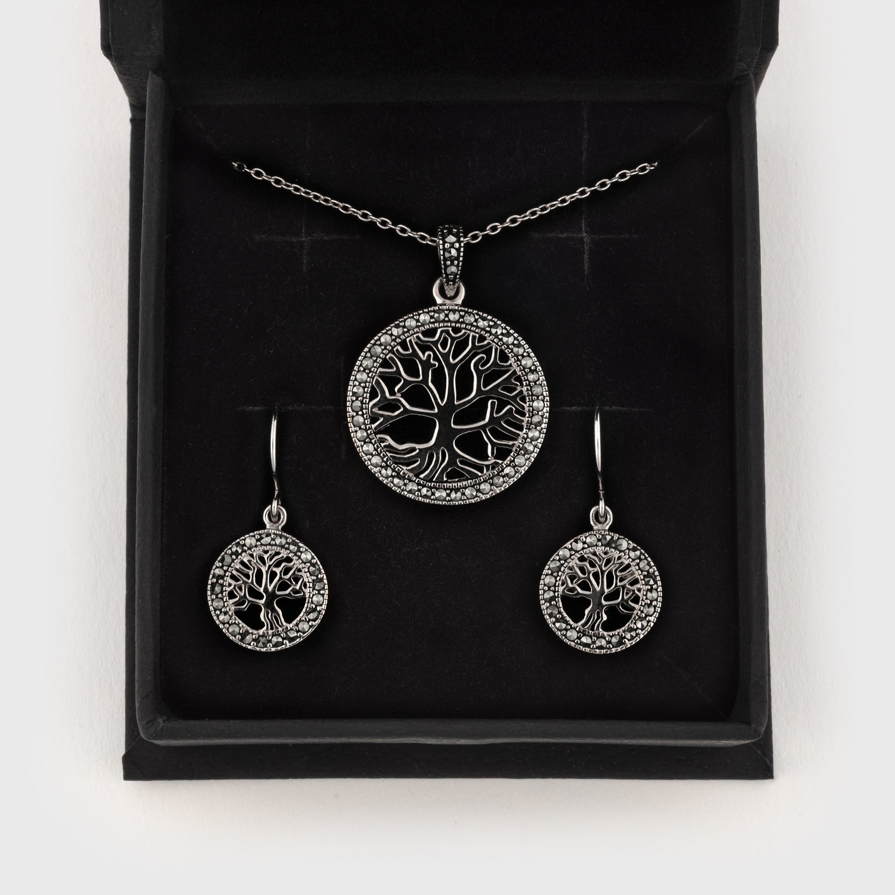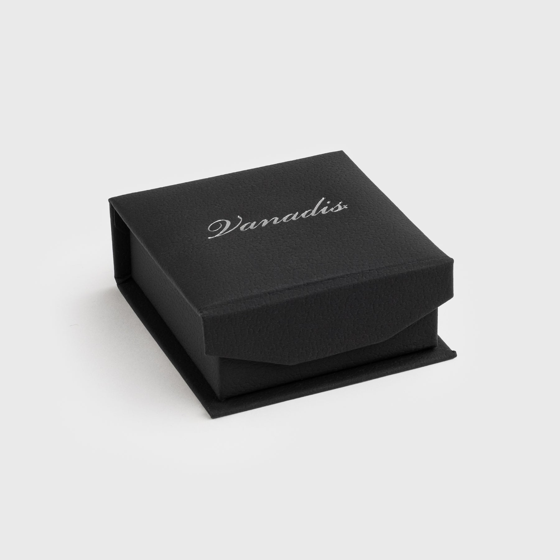 Smyckesasken är tillverkad med en utsida i mattsvart konstläder som ger ett raffinerat och elegant utseende. Den har en diskret magnetisk stängning som håller locket säkert på plats samtidigt som den behåller en smidig design. Interiören är fodrad med mjukt svart skum som både skyddar och förstärker presentationen av dina smycken, vilket gör den idealisk för alla Vanadis hängen och örhängen.